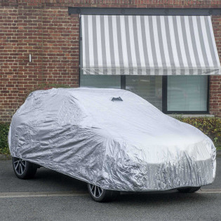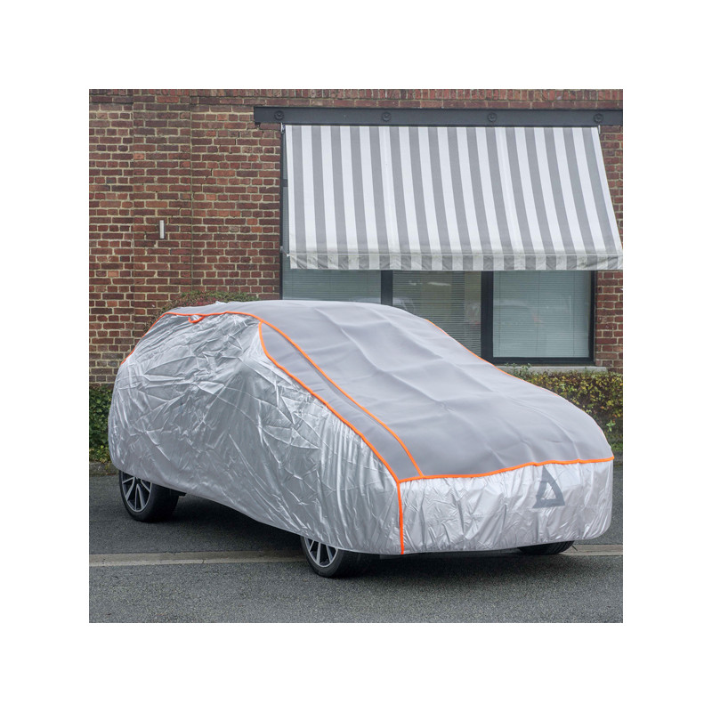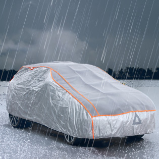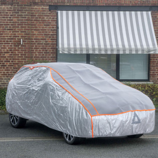 3- Verstärkter Schutz und einfache Anbringung : Für eine optimale Pflege ist die Plane vollständig mit einem Soft-Touch-Stoff gefüttert, der Ihre Karosserie vor Kratzern schützt. Ein durchgehendes Gummiband sorgt für einen sicheren Sitz und erleichtert die Installation. Achtung: Verwenden Sie die Plane nicht bei Frost, da sie an der Karosserie haften bleiben könnte