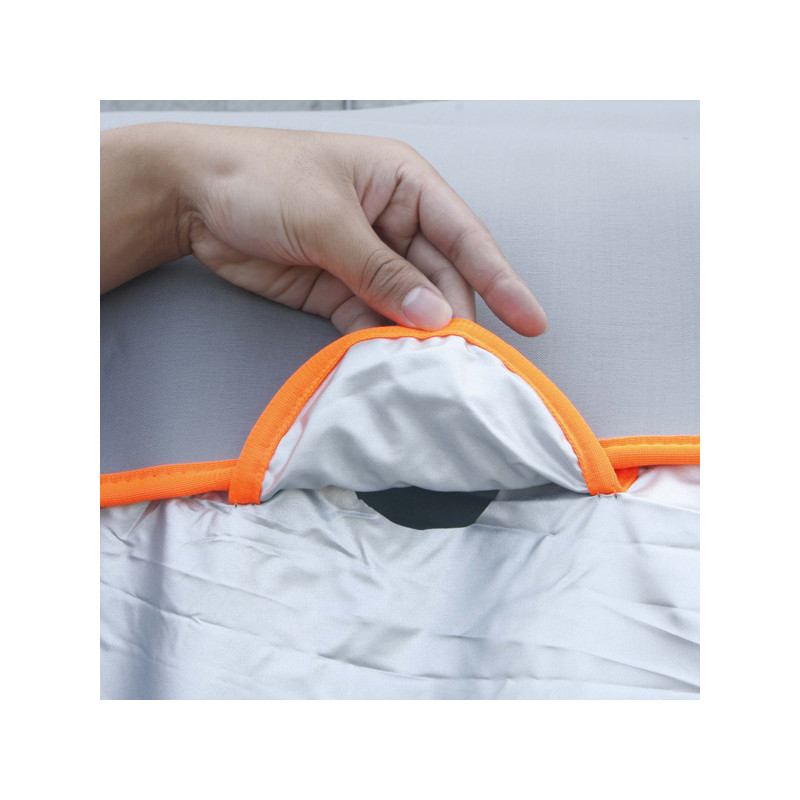 2- Atmungsaktive Eigenschaften : Diese Plane besteht aus 100 % Polyester und verfügt über eine atmungsaktive Beschichtung, die die Bildung von Feuchtigkeit und das Auftreten von Schimmel verhindert und so einen lang anhaltenden und effektiven Schutz gewährleistet.3-Für einen verbesserten Schutz ist Ihre Autoplane vollständig mit einem Soft-Touch-Stoff gefüttert.