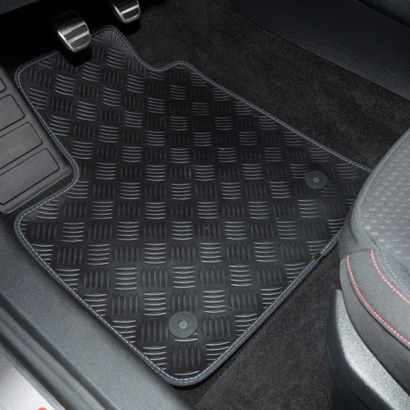 2- Dieses exklusive AUTOGRIP©-Patent ist TÜV-zertifiziert, eine echte Institution und ein Beweis für die Seriosität von Kontrolle und Sicherheit. Die anderen Matten, aus denen sich das Set zusammensetzt, verfügen über eine Rückseite aus Granulat für einen besseren Halt. Ihre Matten haben ein Jahr Garantie.