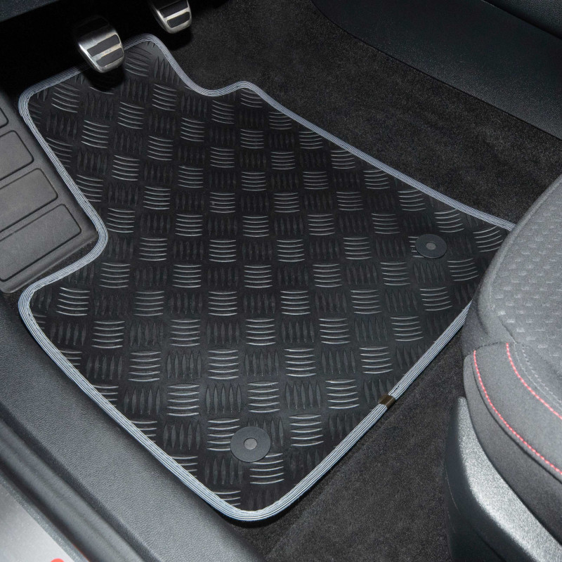 2- Dieses exklusive AUTOGRIP©-Patent ist TÜV-zertifiziert, eine echte Institution und ein Beweis für die Seriosität von Kontrolle und Sicherheit. Die anderen Matten, aus denen sich das Set zusammensetzt, verfügen über eine Rückseite aus Granulat für einen besseren Halt. Ihre Matten haben ein Jahr Garantie.