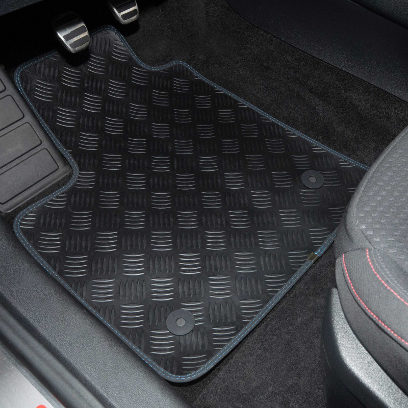 2- Dieses exklusive AUTOGRIP©-Patent ist TÜV-zertifiziert, eine echte Institution und ein Beweis für die Seriosität von Kontrolle und Sicherheit. Die anderen Matten, aus denen sich das Set zusammensetzt, verfügen über eine Rückseite aus Granulat für einen besseren Halt. Ihre Matten haben ein Jahr Garantie.